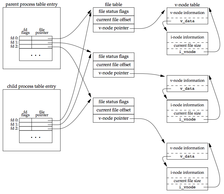- 剛 fork 時 child 的 file descriptor 會和 parent 有一樣的 offset