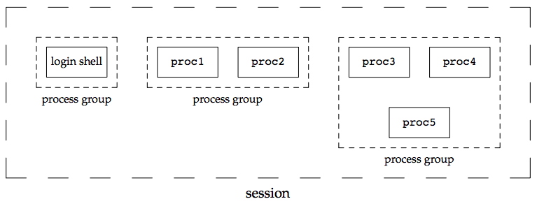 - session 是一或多個 process group 的集合