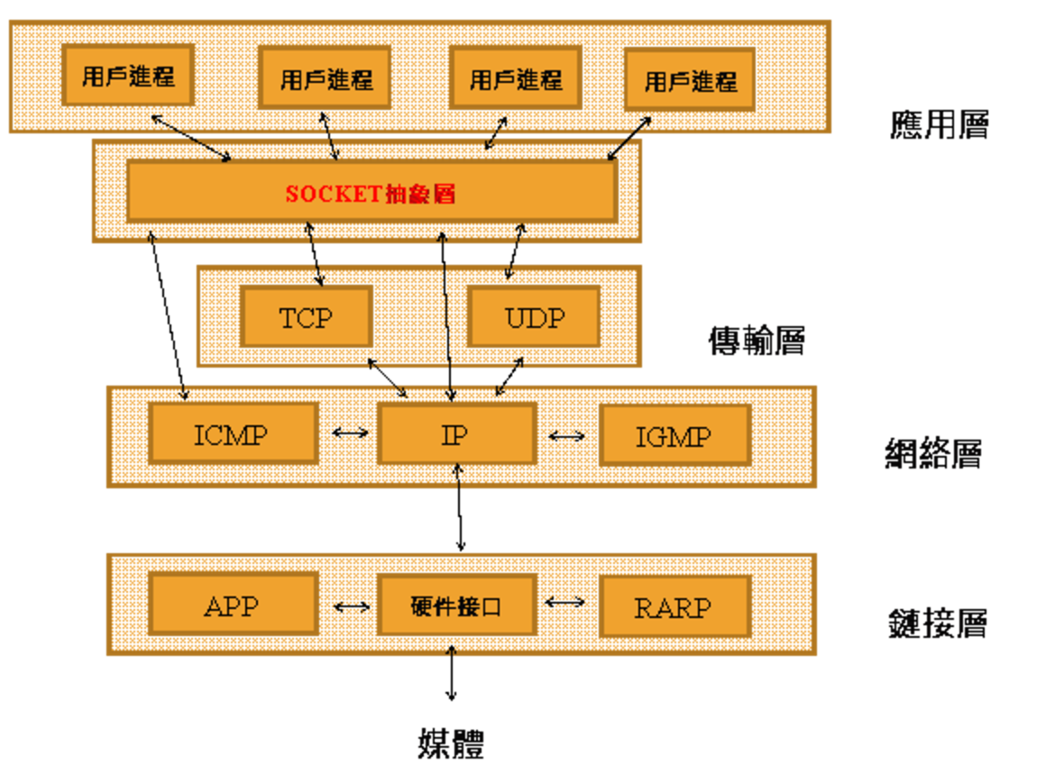 - Berkeley Socket 又稱 BSD Socket,是介於 Transport Layer 與 Application Layer 間的 API,用於行程間通訊 (UNIX Socket) 和網路通訊 (Network Socket)